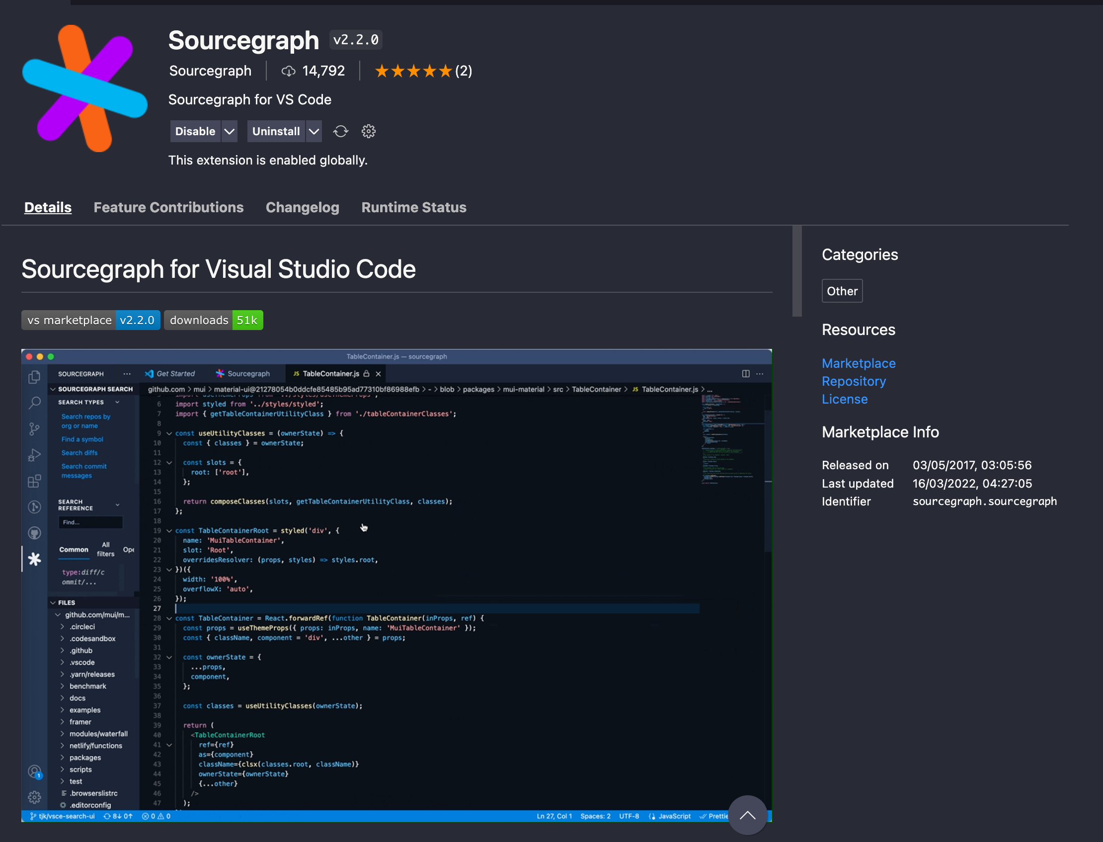 Cross-reference code with Sourcegraph Visual Studio Code plugin